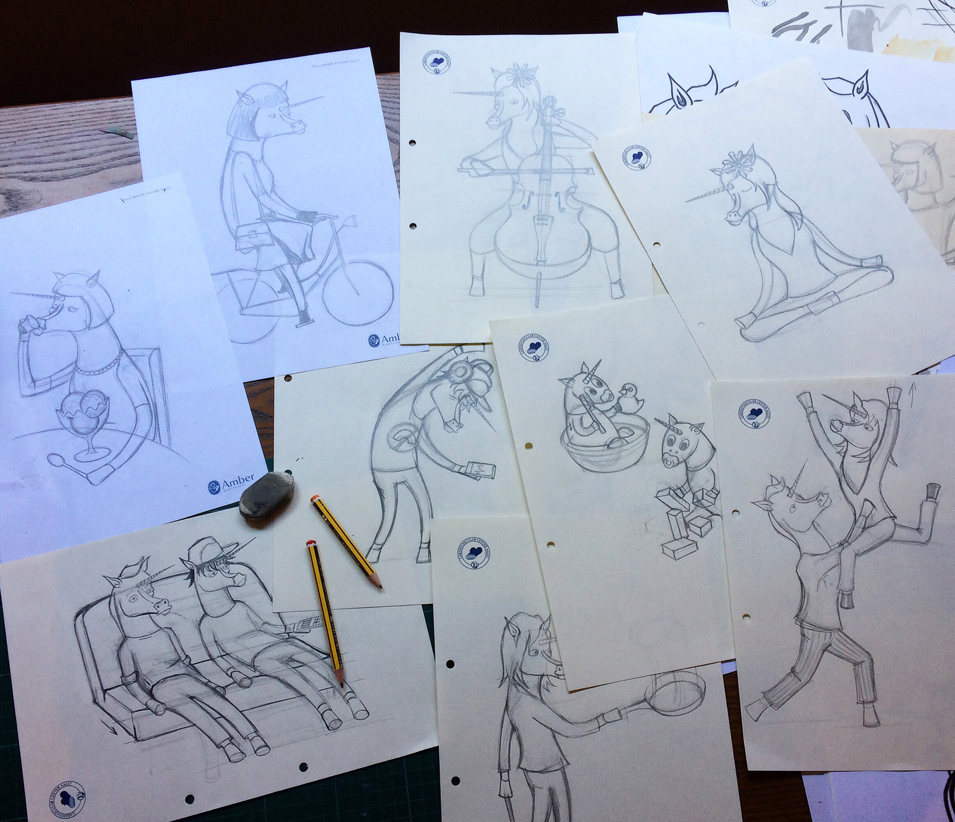 For the culture center in Sint-Niklaas (Belgium) I created the character Bruno the unicorn and his family. I also made a few animations for them.