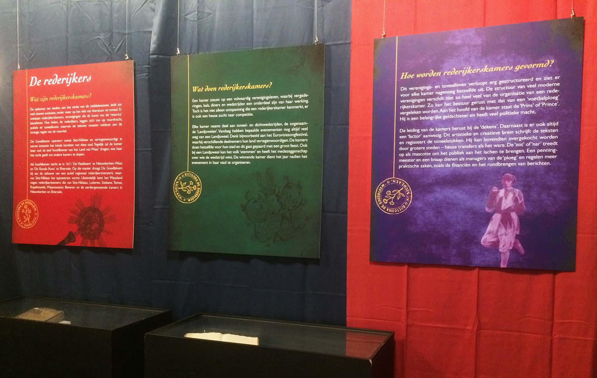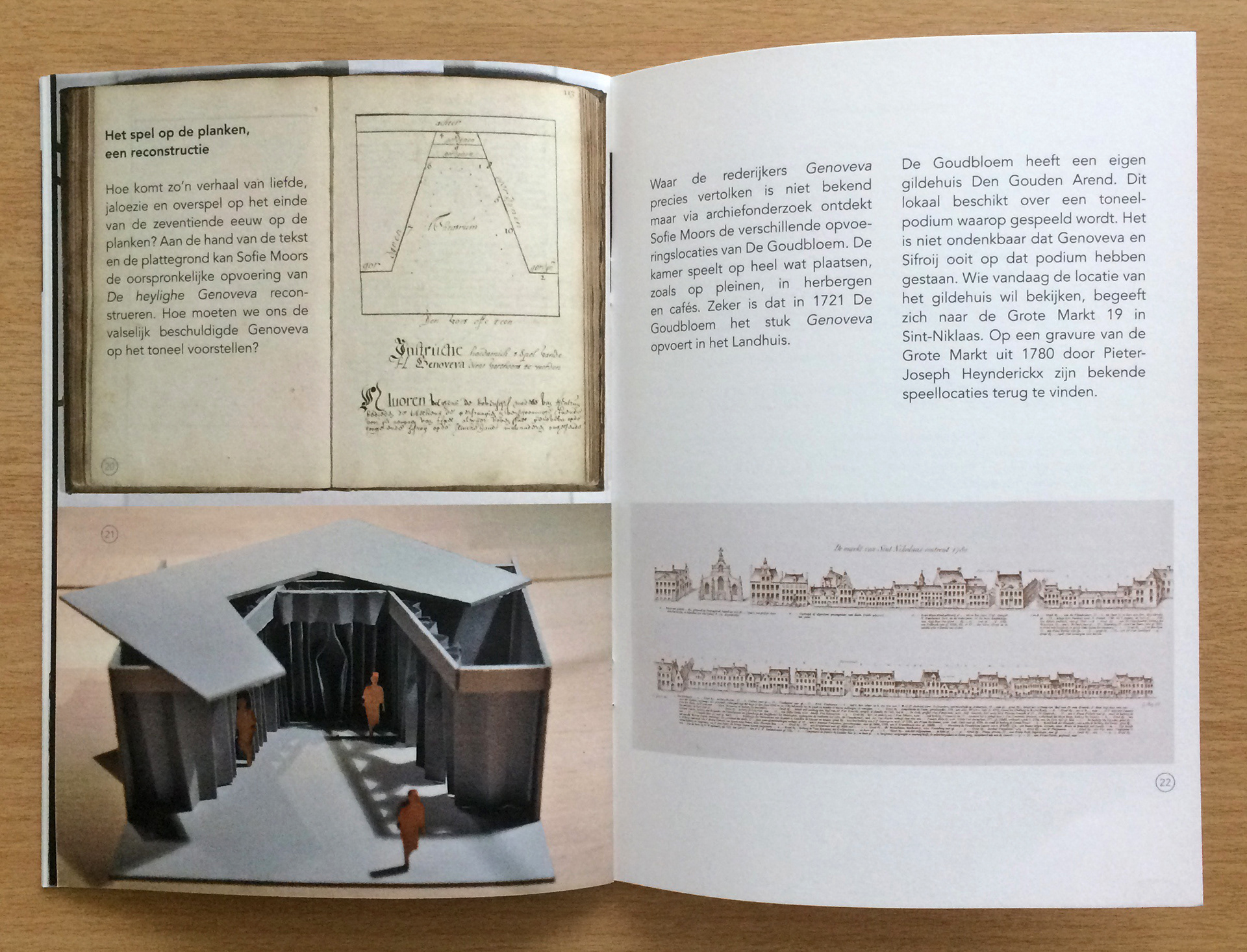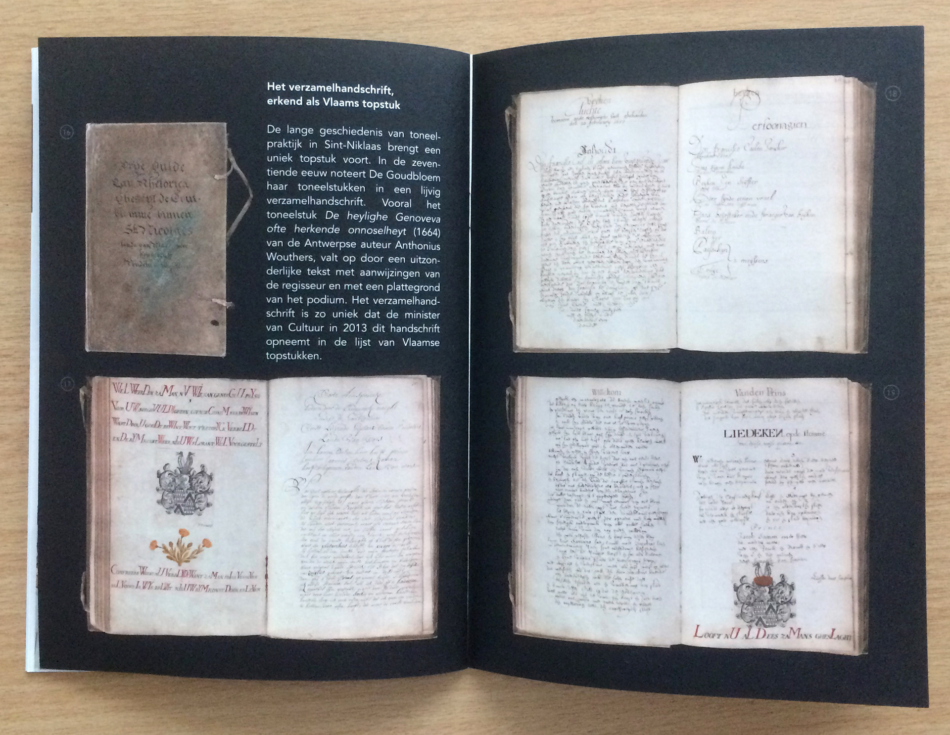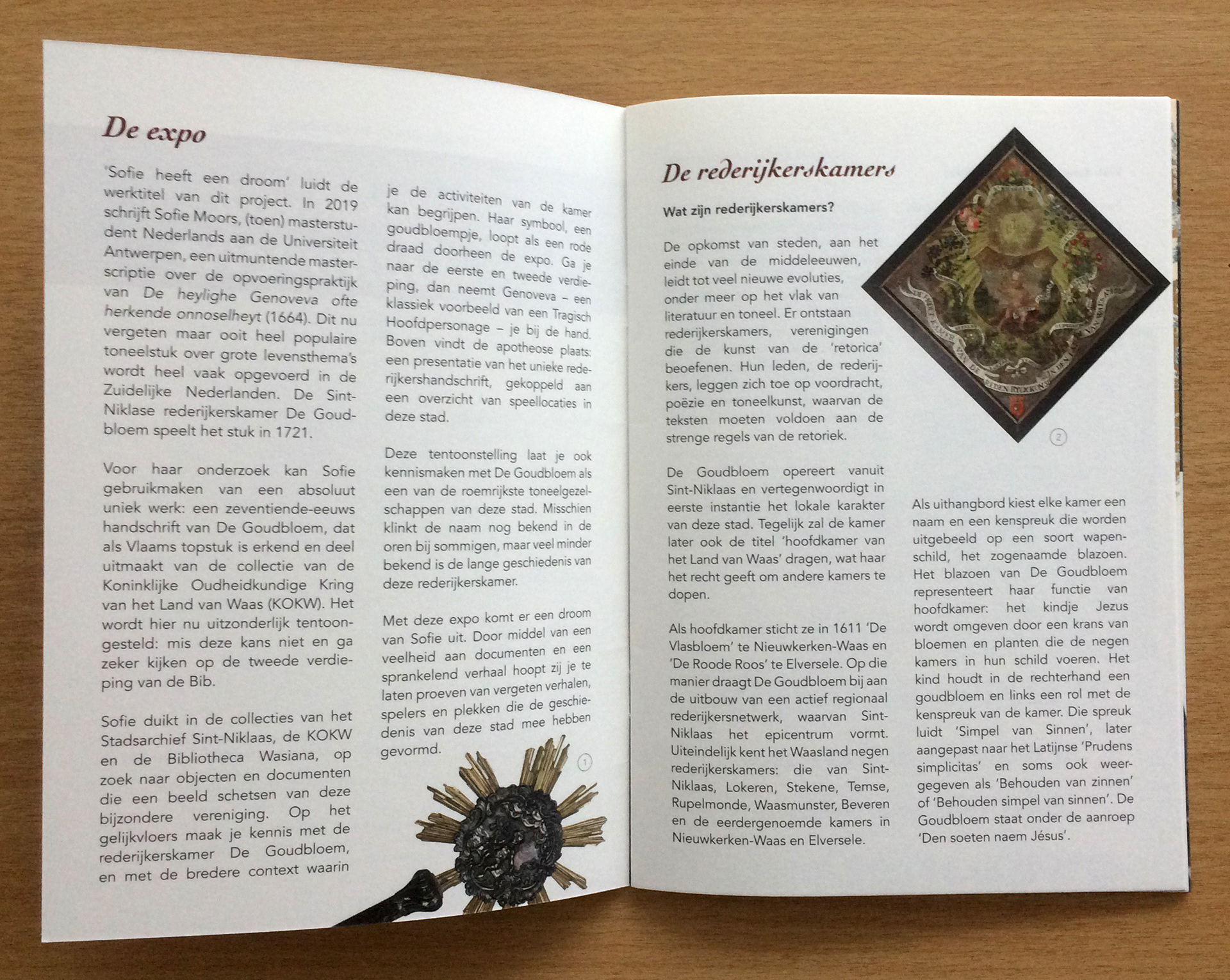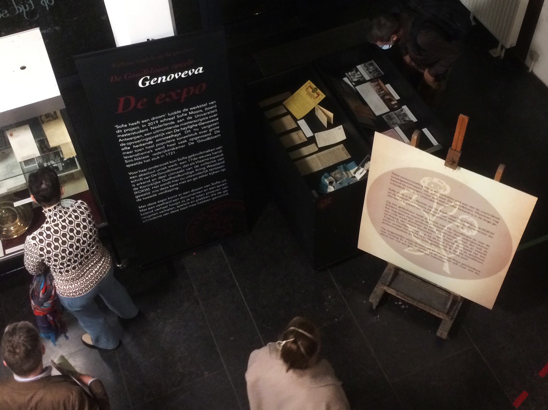 Assignment for Bibliotheca Wasiana. Layout work for expo 'Tijdloze tragiek op de planken - De Goudbloem speelt Genoveva': poster, information panels and banners, visitor's guide, window print, digital banners…