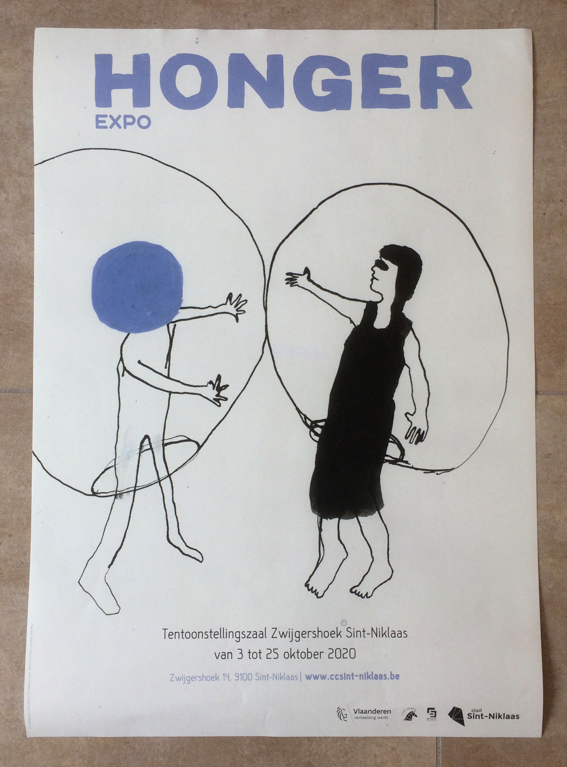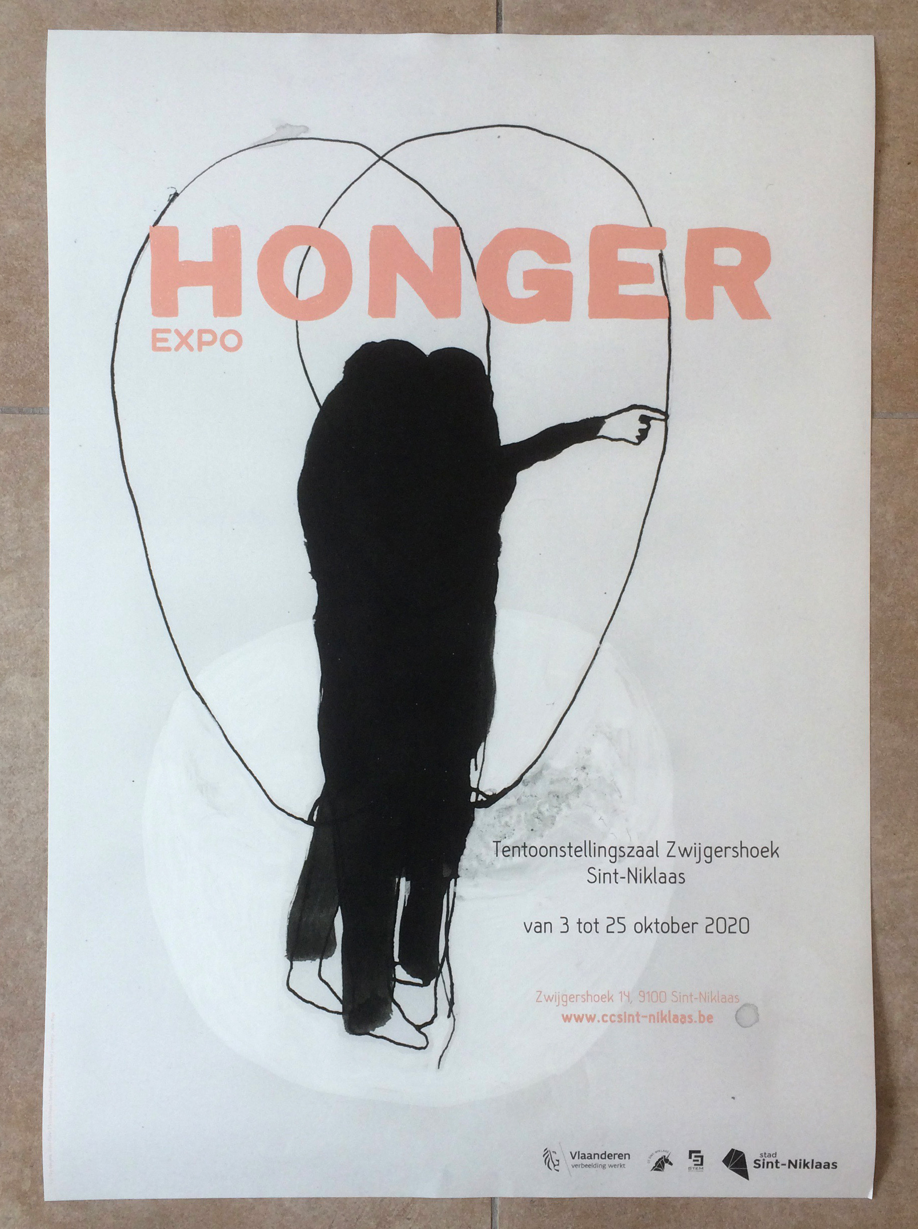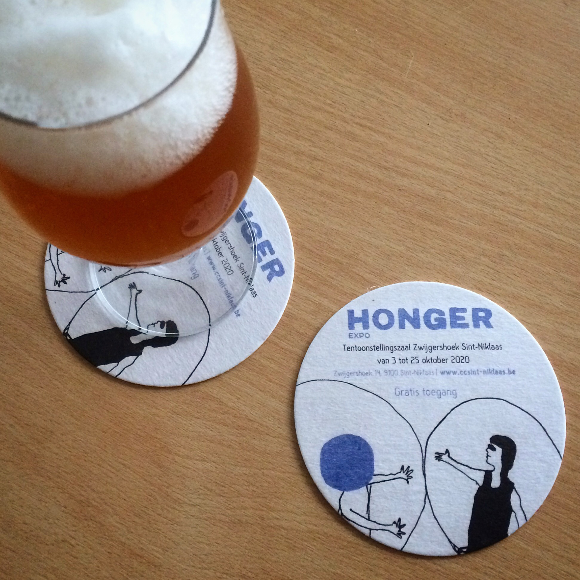 Assignment for CC Sint-Niklaas. Layout work for art expo HONGER: posters, flyers, banners, beer coasters, placemats, window prints, visitor's guide, digital banners… Illustrations by Steffie Van Cauter, one of the partaking artists.