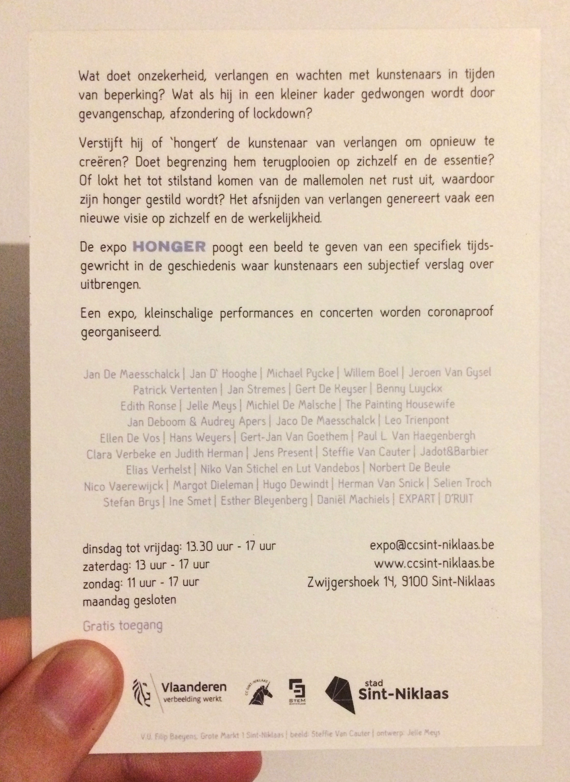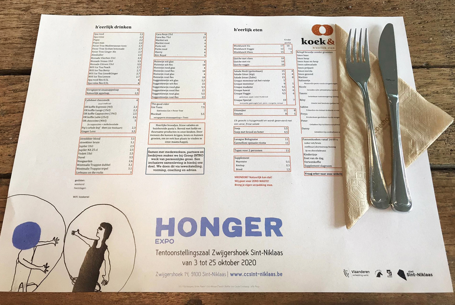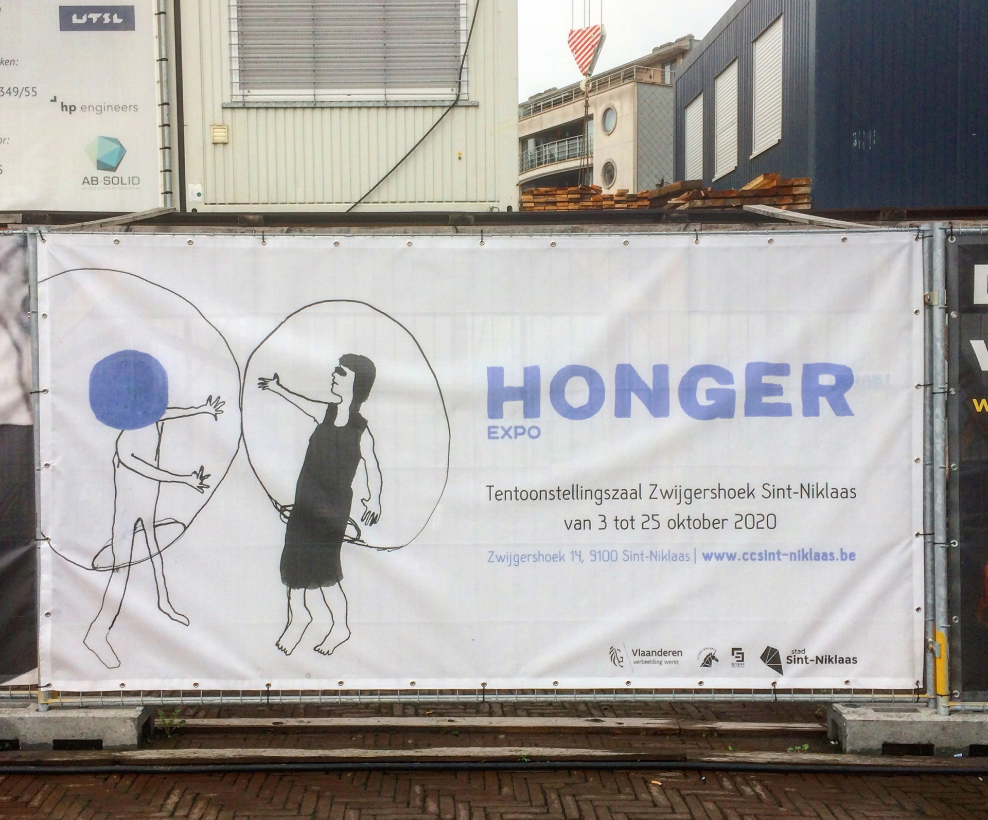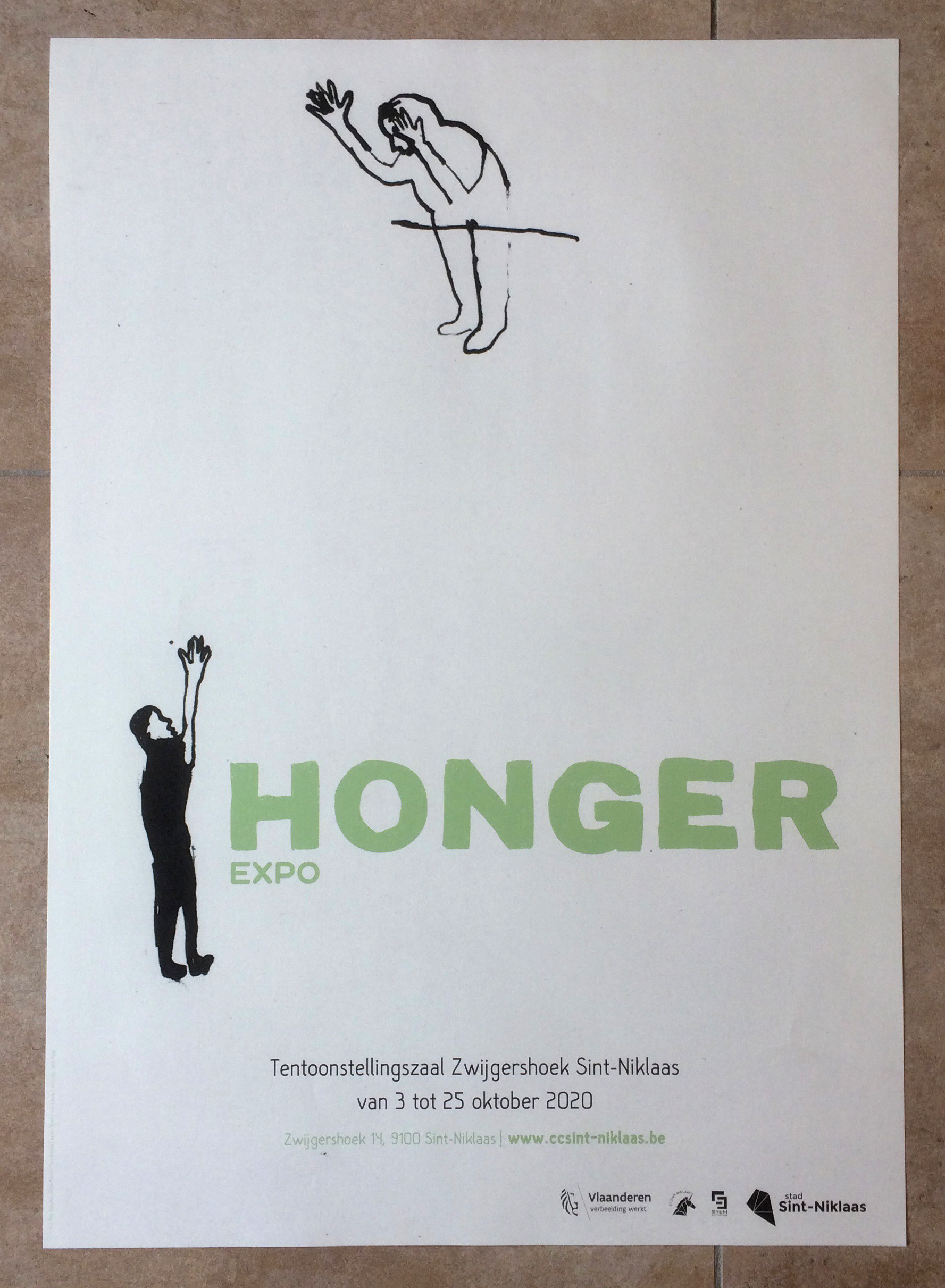 Assignment for CC Sint-Niklaas. Layout work for art expo HONGER: posters, flyers, banners, beer coasters, placemats, window prints, visitor's guide, digital banners… Illustrations by Steffie Van Cauter, one of the partaking artists.