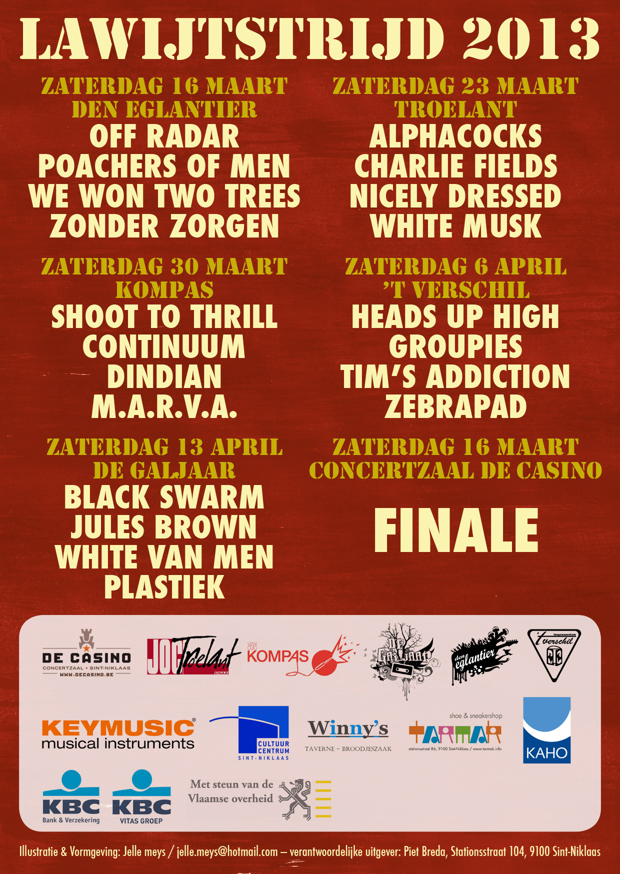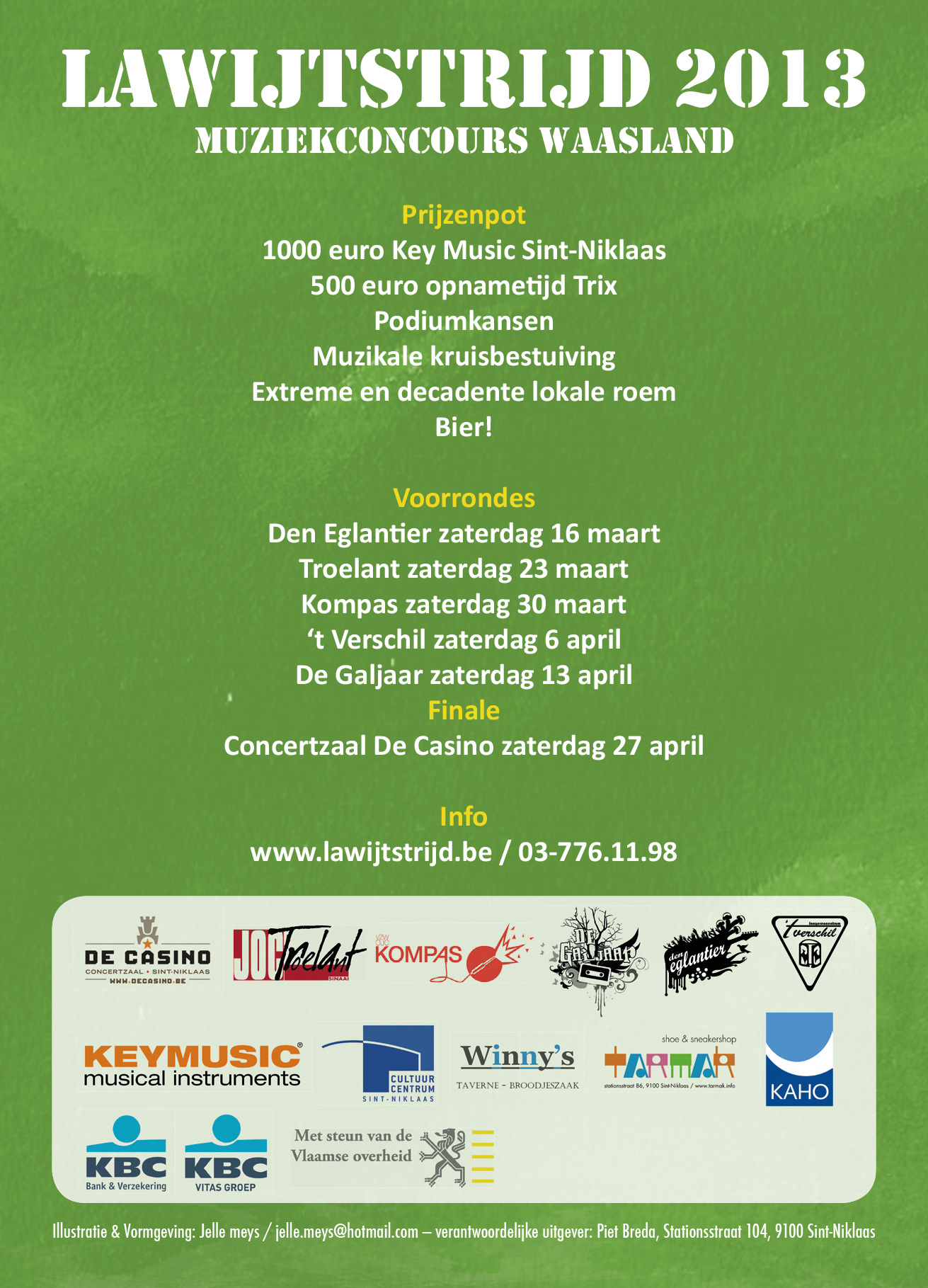 Illustrations and graphic design for Lawijtstrijd 2013, a regional music contest.