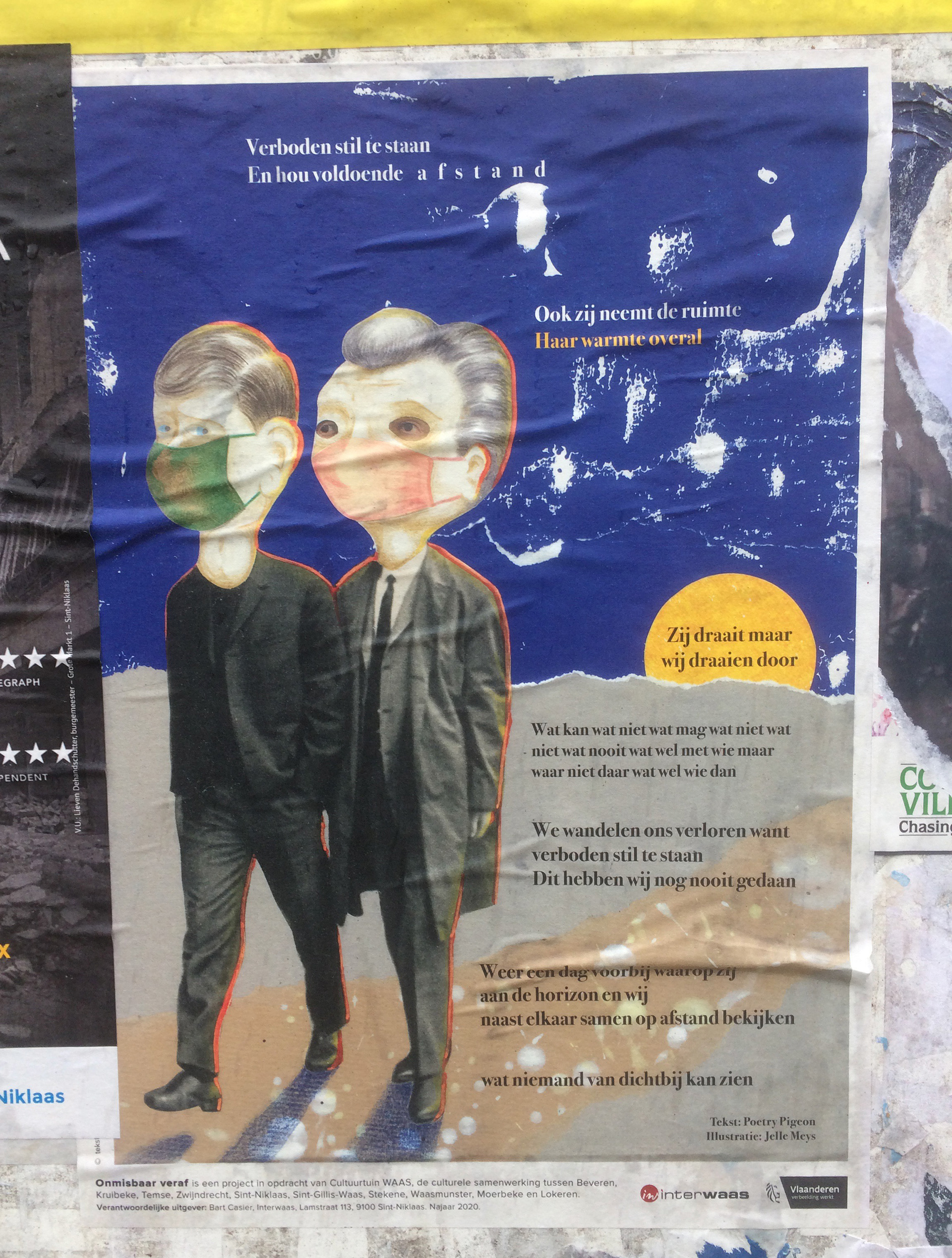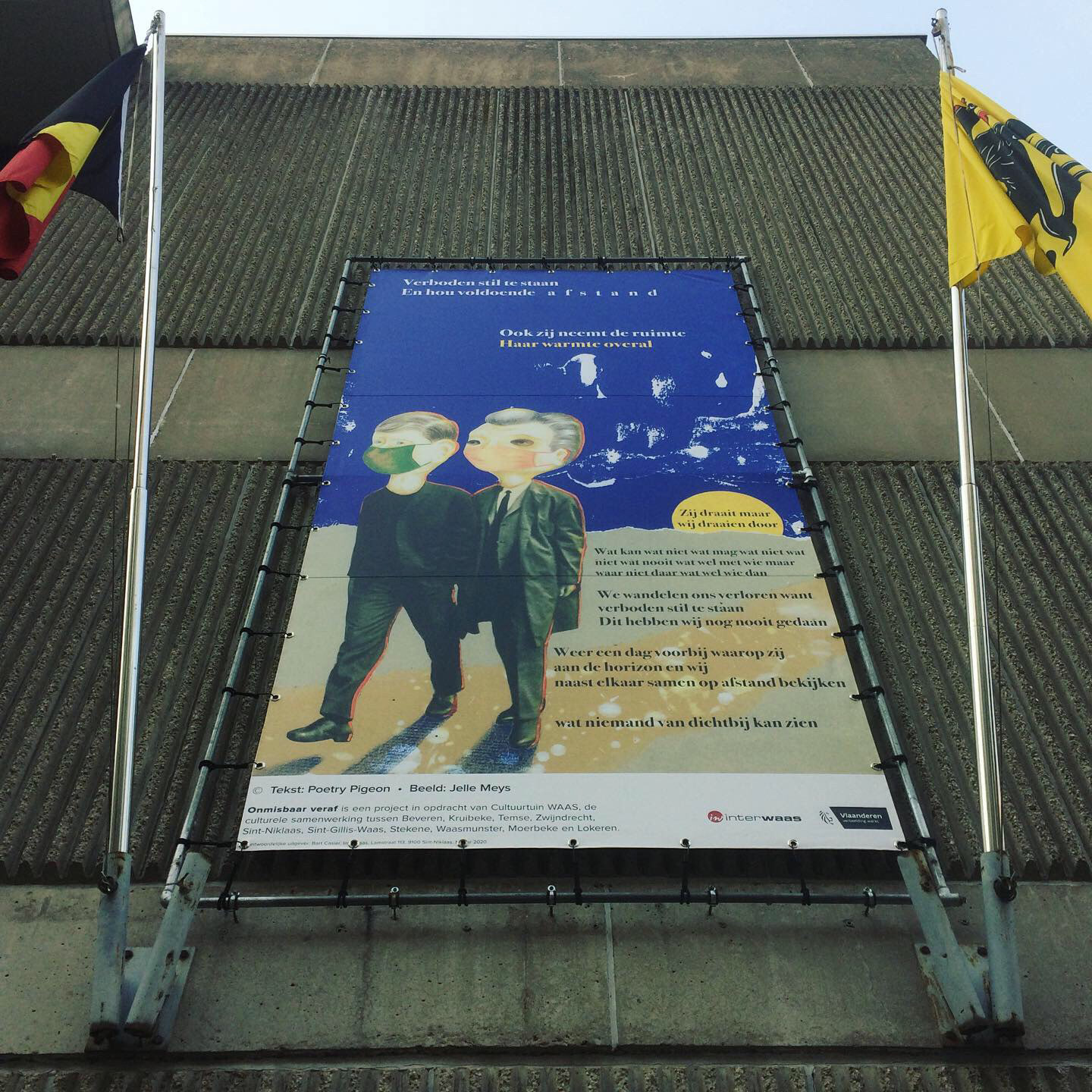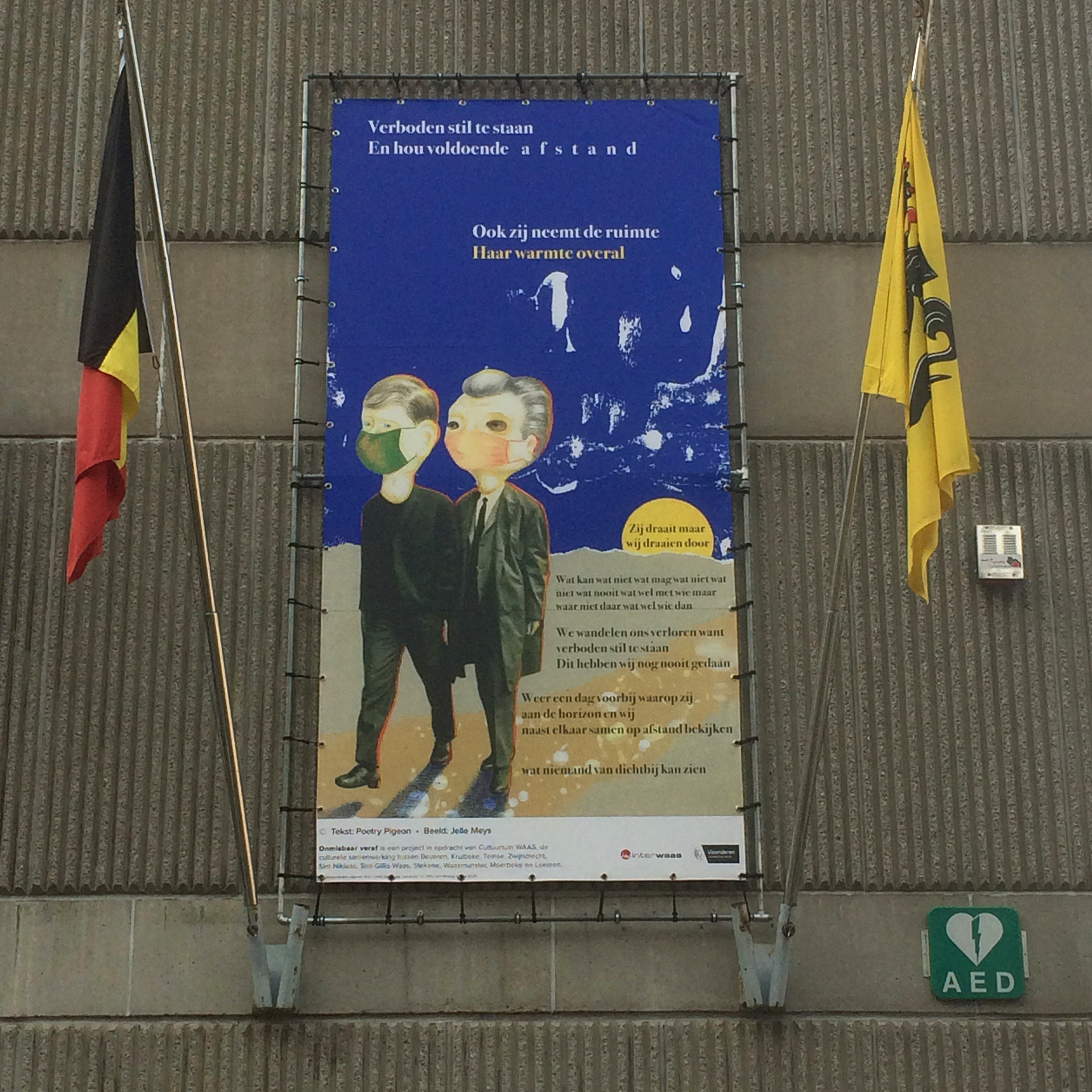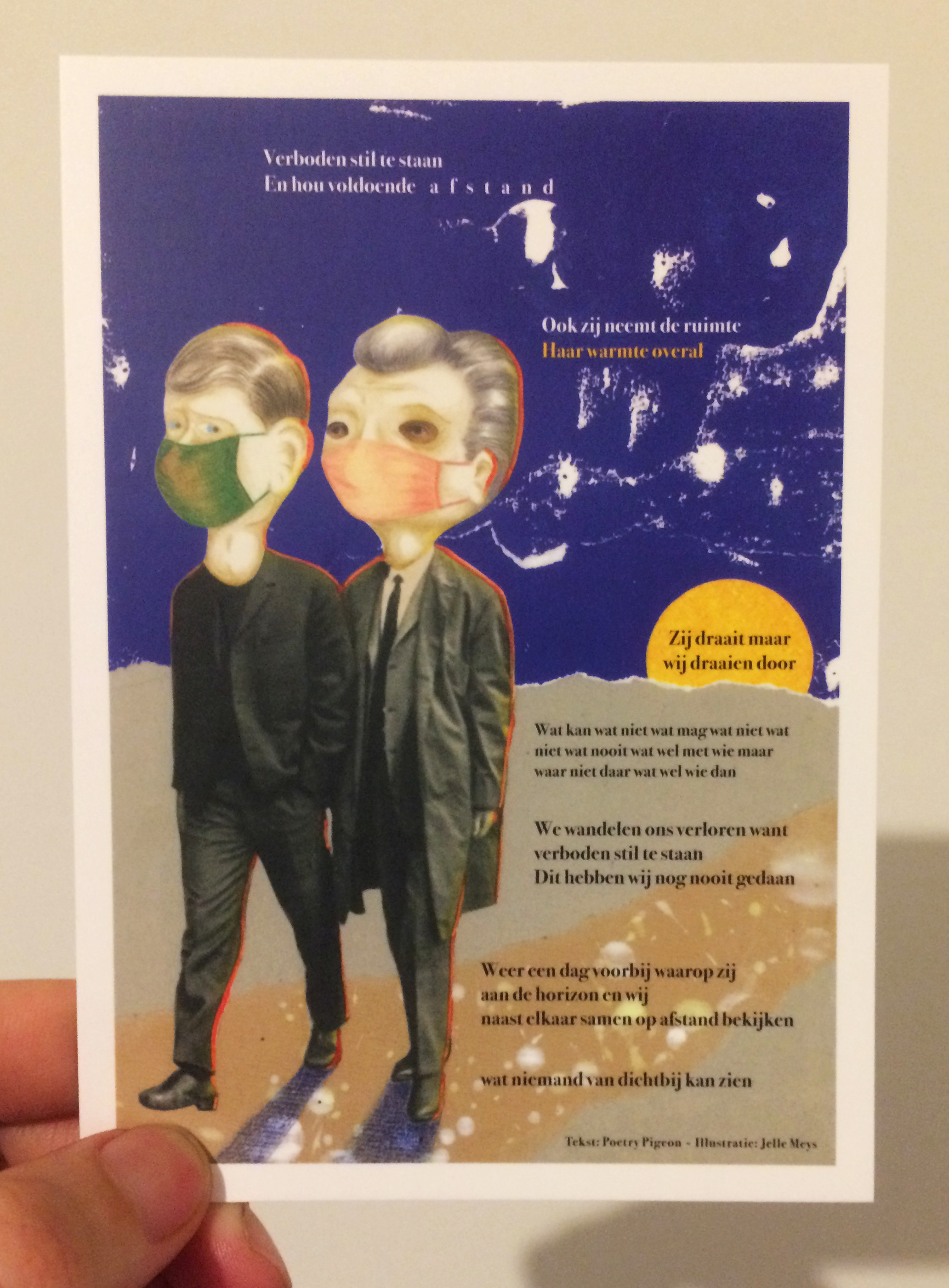 For the project 'Onmisbaar veraf' several illustrators were connected with poets. I got linked to the poetry collective Poetry Pigeon and illustrated their corona inspired poem. This resulted in posters, a large banner and post cards.